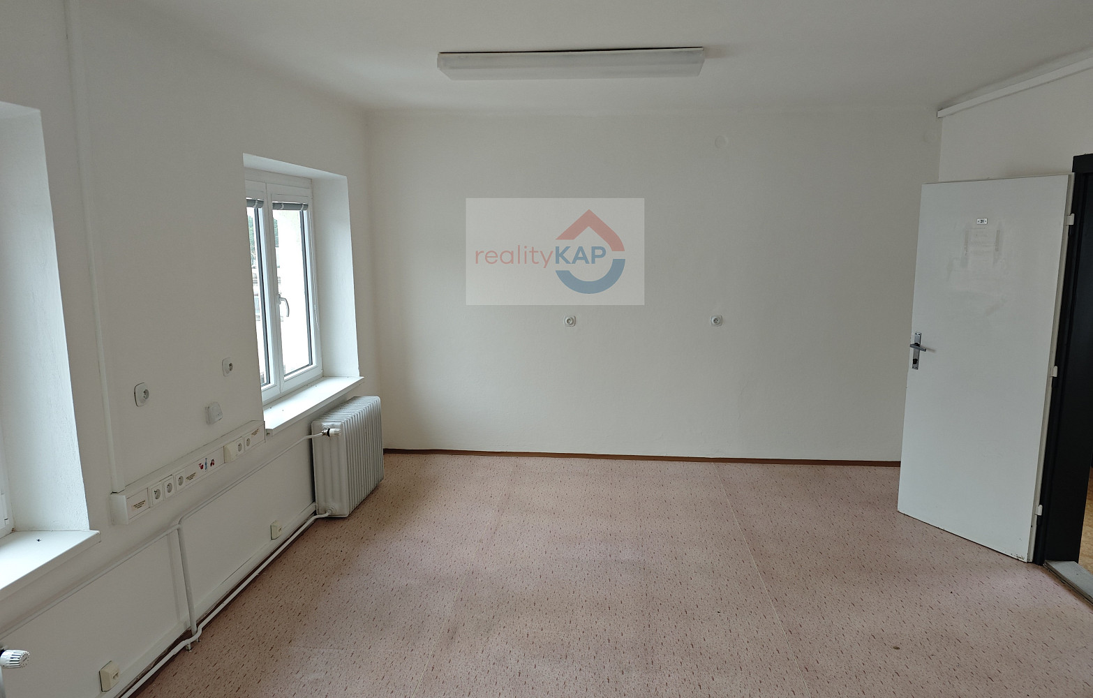 Pronajmeme prostory vhodné jako kanceláře nebo zázemí pro administrativu a služby v 1. patře budovy s vlastním samostatným vchodem. Jedná se o 3 místnosti o celkové ploše 68 m² doplněné sociálním zázemím (viz půdorys). Prostory jsou centrálně vytápěny.
