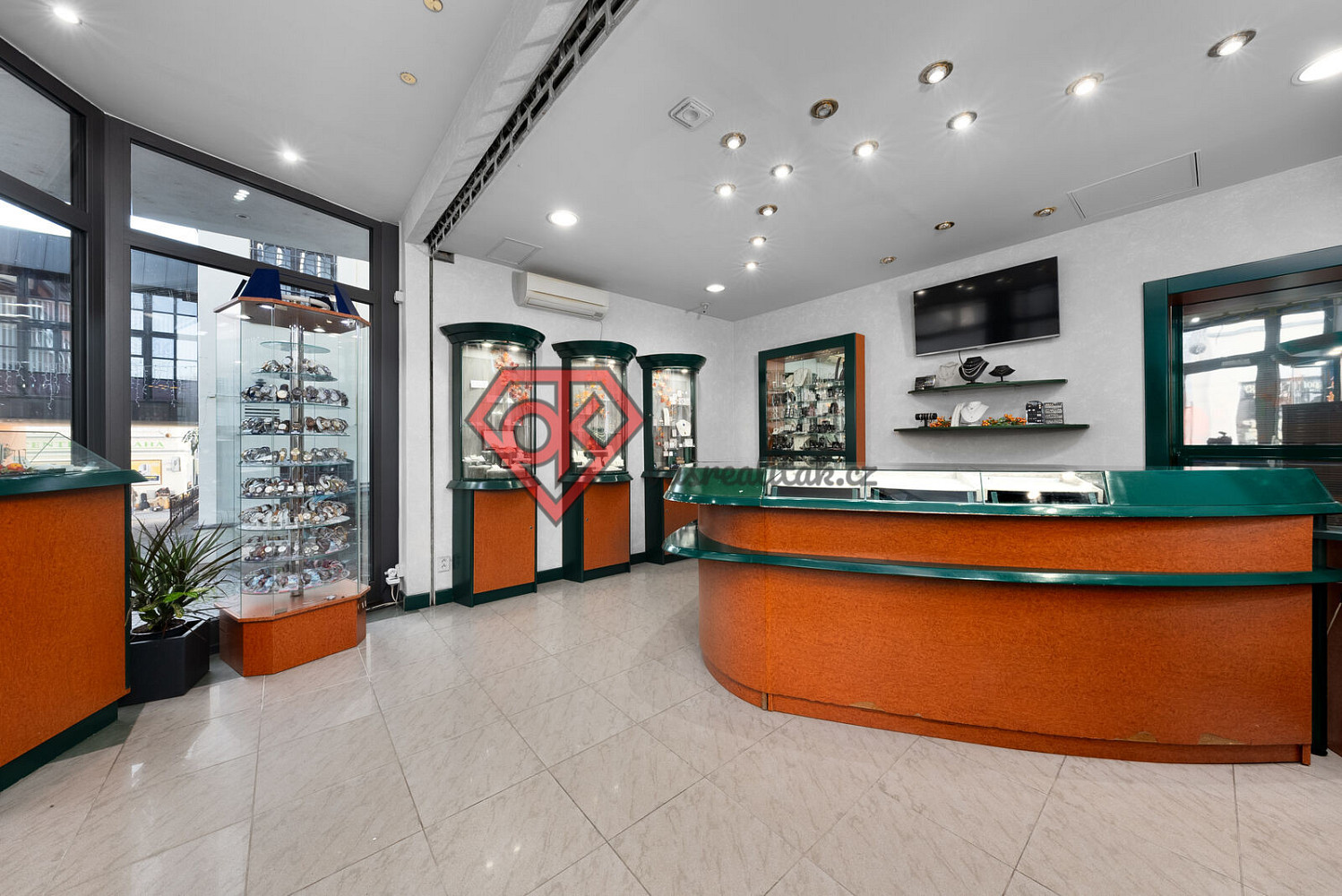 Prostor zlatnictví disponuje užitnou plochou 23 m² a 7 m² zázemí. Díky svému současnému využití, je toto místo střeženo kamerovým systémem, napojeno na PCO a překvapením tím pádem není ani rolovací mříž. Hliníkové výlohy a vstupní dveře, jsou navíc po celkové rekonstrukci a splňují bezpečnostní i tepelné parametry. Prostor má klimatizaci a trezor.