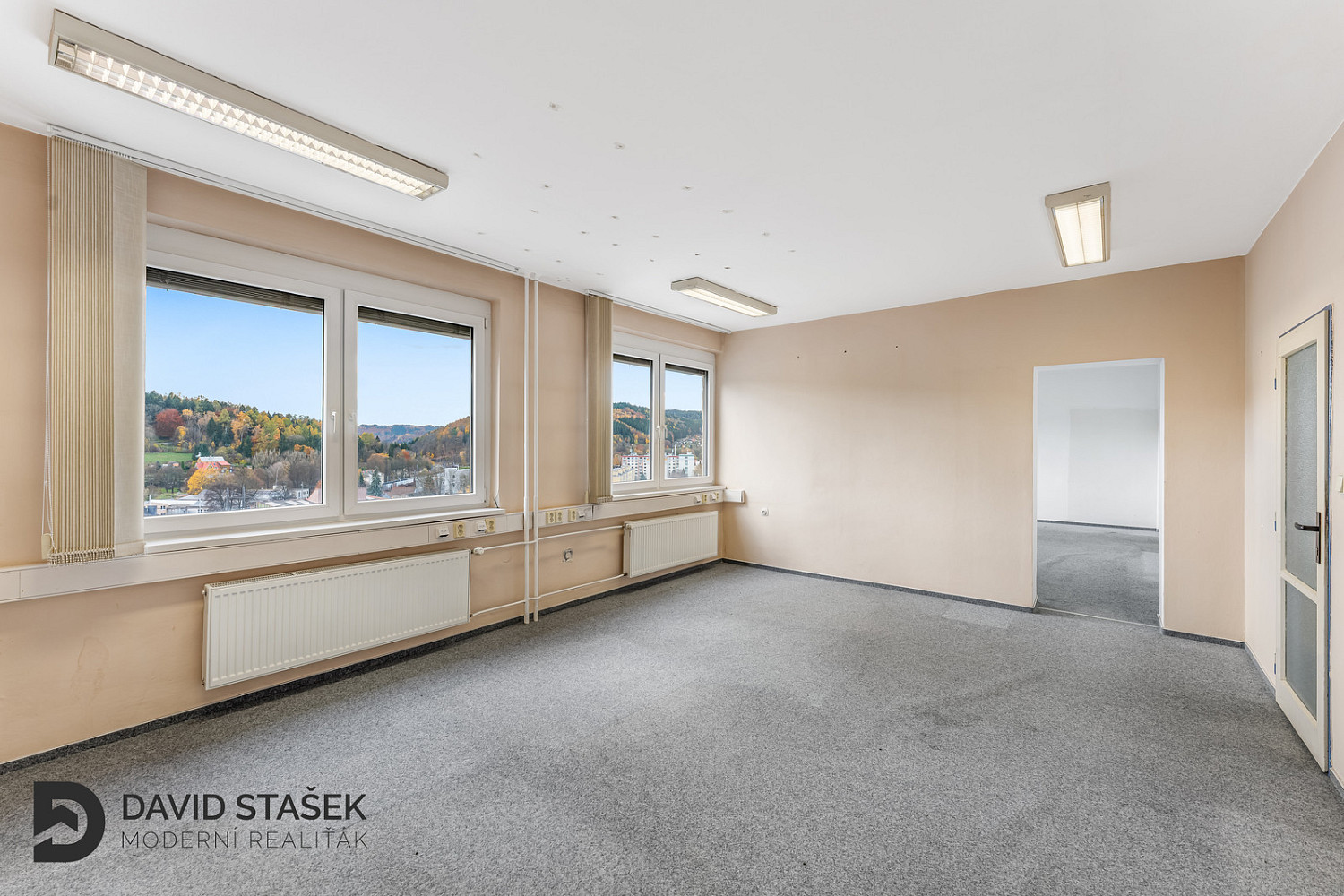 K dispozici je kancelář o velikosti 39 m², ideální pro větší nebo rozšiřující se tým.