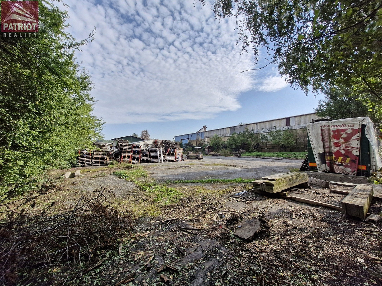 V rámci pozemku je dostupná také zpevněná plocha, která umožňuje snadný přístup a manipulaci s nákladními vozidly.